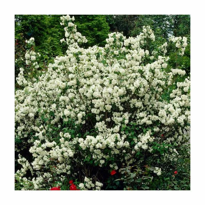 Philadelphus ‘Virginal’ is a summer-flowering shrub that produces highly fragrant pure white double flowers.