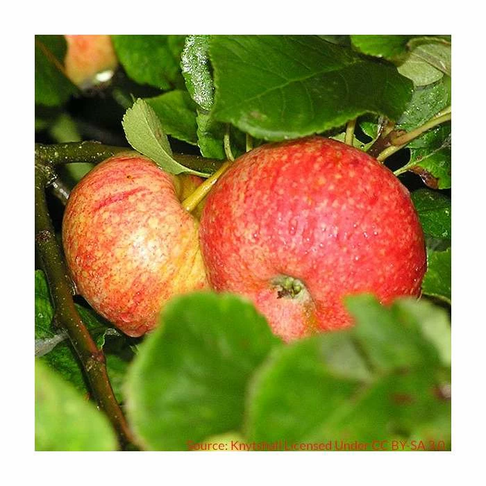 Beauty of Bath originated from the 19th Century as a local variety grown at Bailbrook, near Bath. It was introduced by the nurseryman George Cooling of Bath circa 1864. With attractive looking small to medium sized, flat round fruit, it is russeted with red flush and stripes over pale greenish yellow skin. Creamy white, soft, juicy flesh, sometimes stained pink under the skin. An excellent apple to have in any garden.